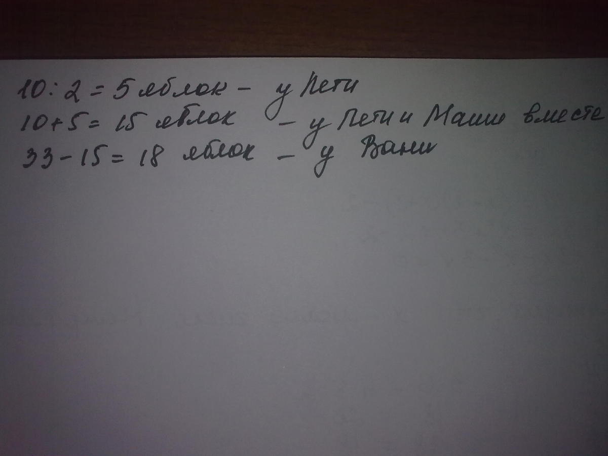 Маша 10, Петя 5(10:2), Ваня 18(33-10-5)