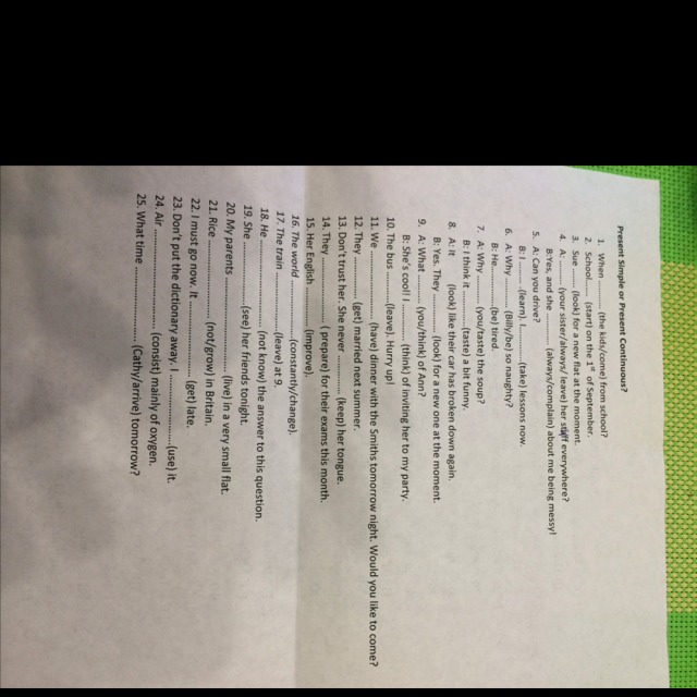 4 Does your sister always leave her stuff everywhere? Yes. And she always complains about me being messy. (если эмоционально, то is complaining)