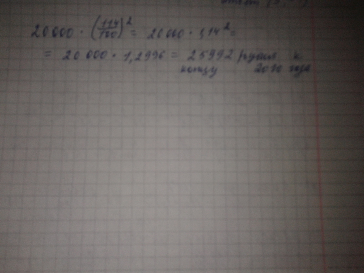 Костя в начале 2009 года положил в банк 20 000 рублей под 14% годовых. Сколько рублей было на счету Кости к концу 2010 года, если никаких операций со счетом за эти 2 года не проводилось? Проценты начисляются в конце каждого года.