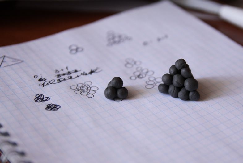 Замечаем, что при каждом новом варианте основание увеличивается. Значит, можно вывести последовательность и дать полный ответ на вопрос, указав все возможные варианты. Попробуем задать правило для этой арифметической прогрессии. Замечаем, что если треугольник (!!! еще не пирамида) состоит из:
