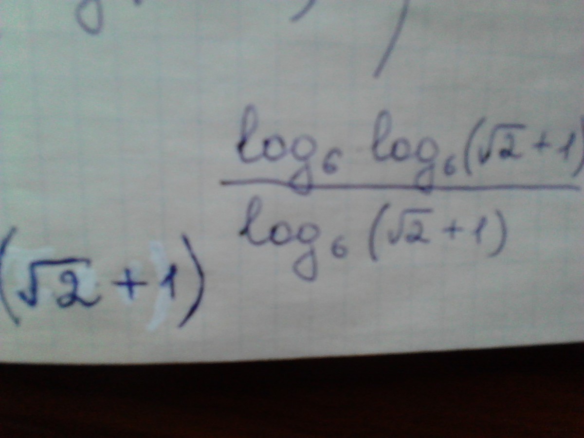 displaystyle (sqrt2+1)^{dfrac{log_6log_6(sqrt2+1)}{log_6(sqrt2+1)}}=(sqrt2+1)^{log_{sqrt2+1}6cdotlog_6log_6(sqrt2+1)}}=\=6^{log_6log_6(sqrt2+1)}=log_6(sqrt2+1)