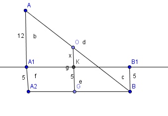 см рисунок: ОG- средняя линия, ОG=1/2AA2, получим х+5=(12+5):2, х=3,5