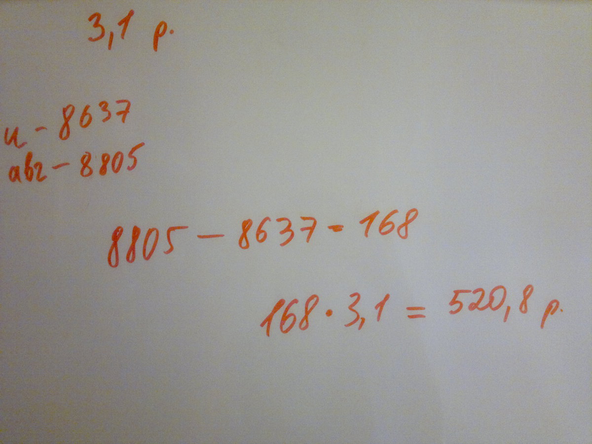 Киловатт-час электроэнергии стоит 3 рубля 10 копеек. Счётчик электроэнергии 1 июля показывает 8637 киловатт-часов,а 1 августа-8805 килловат-часов.Какую сумму (в рублях)нужно заплатить за использование электроэнергии в июле?