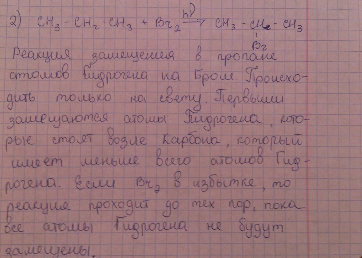2)На примере взаимодействия пропана с бромом приведите механизм реакции радикального замещения.