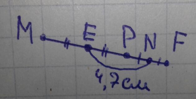 Точка P лежит между точками M и F ,точки E и N-середины отрезка MPи PF. Найдите длину отрезка MF, если EN=4,7 см.