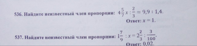 № 536. 4 5/7х : 2/3 = 9,9 : 1,4 № 537. 1 7/9 : х = 2 2/3 : 3/100