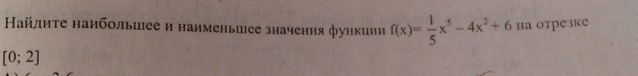 f (0) = (1/5)*0^5 - 4*0^2 + 6 = 6 (наиб)