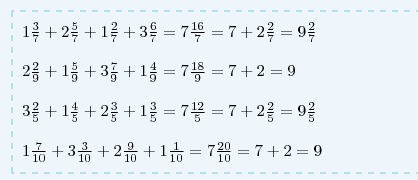 Обоснуй пожалуйста словами если можешь как 3 пример решается я не могу понять, что потом идет 7+2 2/5 и потом равно 9 целых 2/5 откуда 7+2 2 откуда взялось??