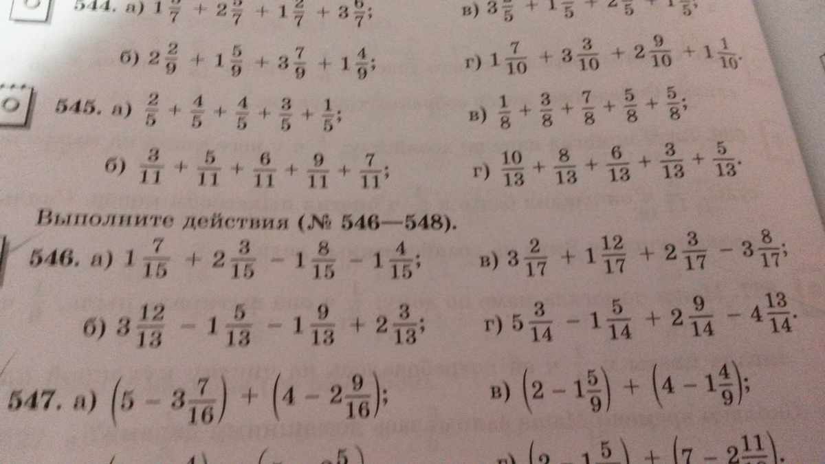 в) 3 2/17 + 1 12/17 + 2 3/17 - 3 8/17 = (3 + 1 + 2 - 3) + (2/17 + 12/17 + 3/17 - 8/17) = 3 + 9/17 = 3 9/17;