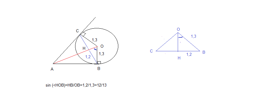 АВ=OB·tg(<AOB)=1,3·12/5=156/50=78/25=3,12