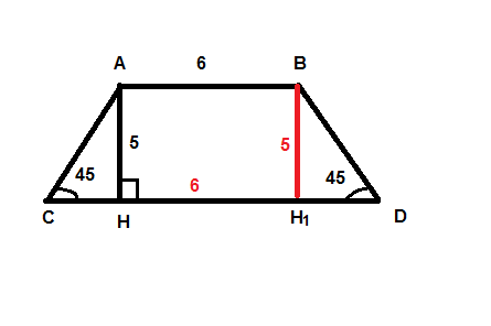 1) Проводим ещё одну высоту BH₁. В итоге, получился прямоугольник ABHH₁. Следовательно, HH₁ = 6.