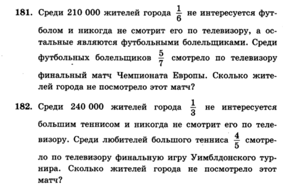 1) 1/6 * 210000 = 35000(жителей) -не болельщики