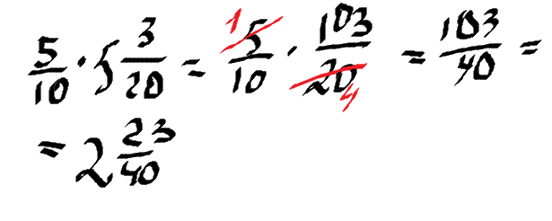5/10 * 5 3/20 = 5/10 * 103/20 = 5*103 = (Дальше 5 в числителе и 20 в