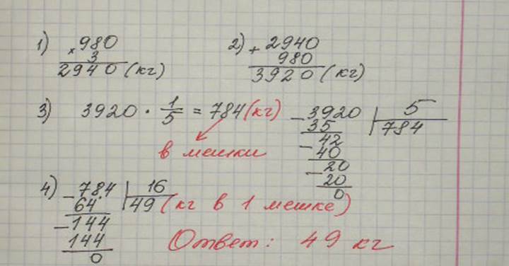одного участка собрали 980кг картофеля, а с другого – в 3 раза больше. Пятую