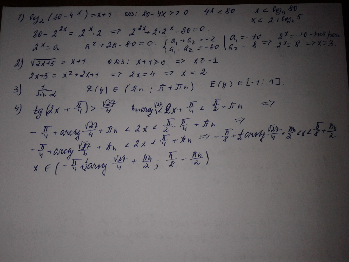 2^(x+1) = 80 - 4^x (по определению логарифма)