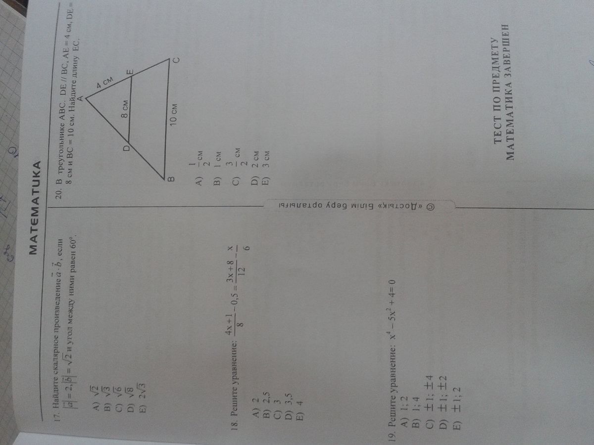 20. треугольники ДАВ и ВАС подобные⇒ ДЕВС = АЕАС, пусть ЕС=х