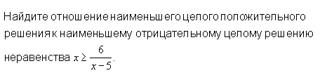Найдите отношение наименьшего целого положительного решения к наименьшему отрицательному целому решению неравенства