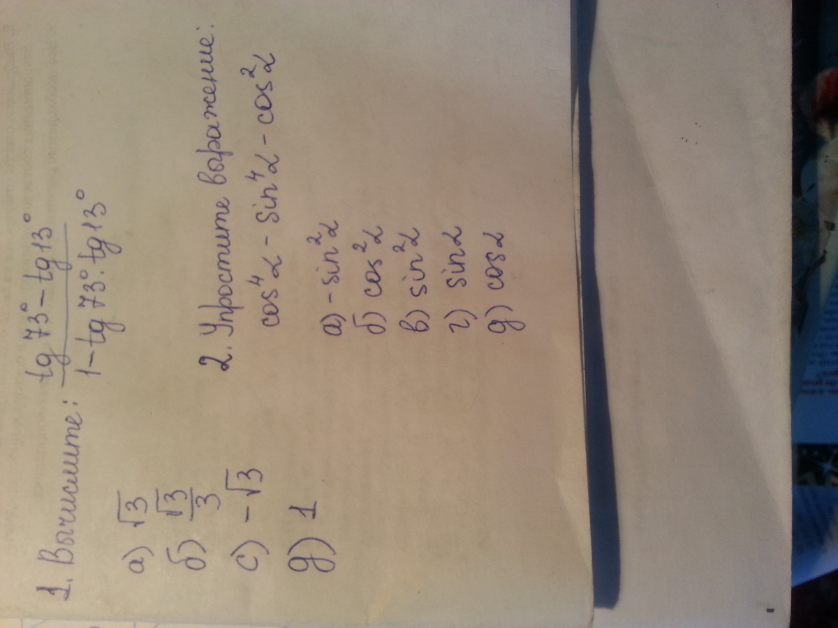 А в №1 tg73 нужно заменить на tg(60+13), а дальше раскрыть скобки по формуле