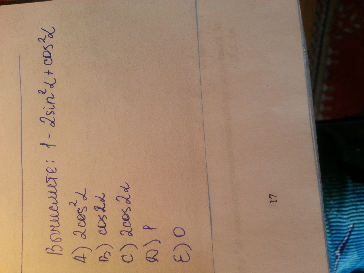 ![1-2sin ^{2} alpha +cos 2 alpha =[1=sin ^{2} alpha +cos ^{2} alpha ]= \= sin ^{2} alpha +cos ^{2} alpha -2sin ^{2} alpha +cos 2 alpha = \ = cos ^{2} alpha -sin ^{2} alpha +cos2 alpha =cos2 alpha +cos2 alpha =2cos2 alpha 1-2sin ^{2} alpha +cos 2 alpha =[1=sin ^{2} alpha +cos ^{2} alpha ]= \= sin ^{2} alpha +cos ^{2} alpha -2sin ^{2} alpha +cos 2 alpha = \ = cos ^{2} alpha -sin ^{2} alpha +cos2 alpha =cos2 alpha +cos2 alpha =2cos2 alpha](https://tex.z-dn.net/?f=1-2sin+%5E%7B2%7D++alpha+%2Bcos+2++alpha+%3D%5B1%3Dsin+%5E%7B2%7D++alpha+%2Bcos+%5E%7B2%7D+alpha+%5D%3D+%5C%3D+sin+%5E%7B2%7D+++alpha+%2Bcos+%5E%7B2%7D++alpha+-2sin+%5E%7B2%7D+alpha+%2Bcos+2++alpha+%3D+%5C+%3D++cos+%5E%7B2%7D+alpha++-sin+%5E%7B2%7D+alpha+%2Bcos2+alpha+%3Dcos2+alpha+%2Bcos2+alpha+%3D2cos2+alpha++)