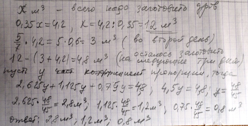 5) 2,625*16/15=42/15= 2,8 м³ в третий день;