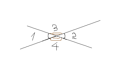 сумма трех неразвернутых углов полученных при пересечении двух прямых равно 280