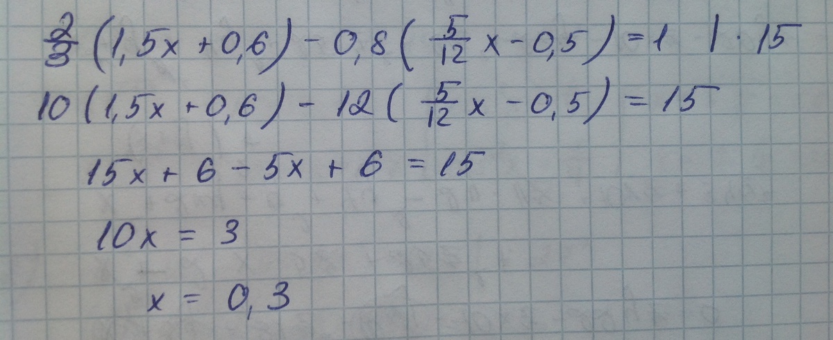 (2*1,5/3)х+2*0,6/3-(0,8*5/12)х+0,5*0,8=1