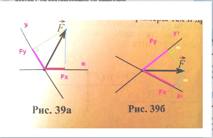 Из начала вектора в конец опущенного перпендикуляра проводим отрезок (Fx и Fy). Эти отрезки и есть составляющие данного вектора по заданным направлениям.