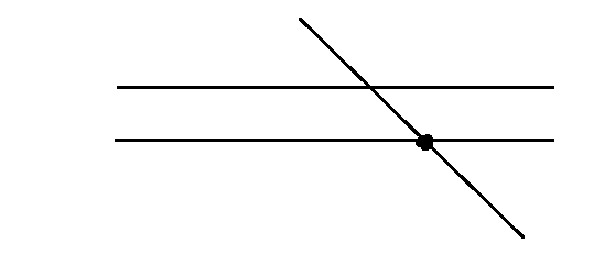 Начертите две параллельные прямые. Через точку, лежащую на одной из этих прямых, проведите прямую, пересекающую обе заданные прямые, но не перпендикулярную им.