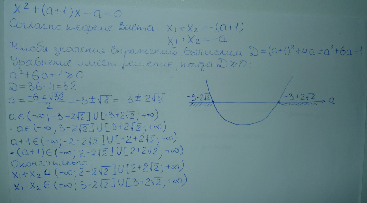 так как D≥0 при всех действительных а, то в соответствии с теоремой Виета имеем:
