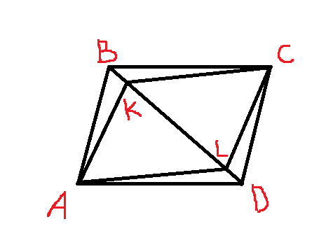 В параллелограмме ABCD на диагонали BD взяты точки K и L так, что BK=DL=1/9BD. Найдите площадь четырёхугольника ALCK, если площадь параллелограмма ABCD равна 36.