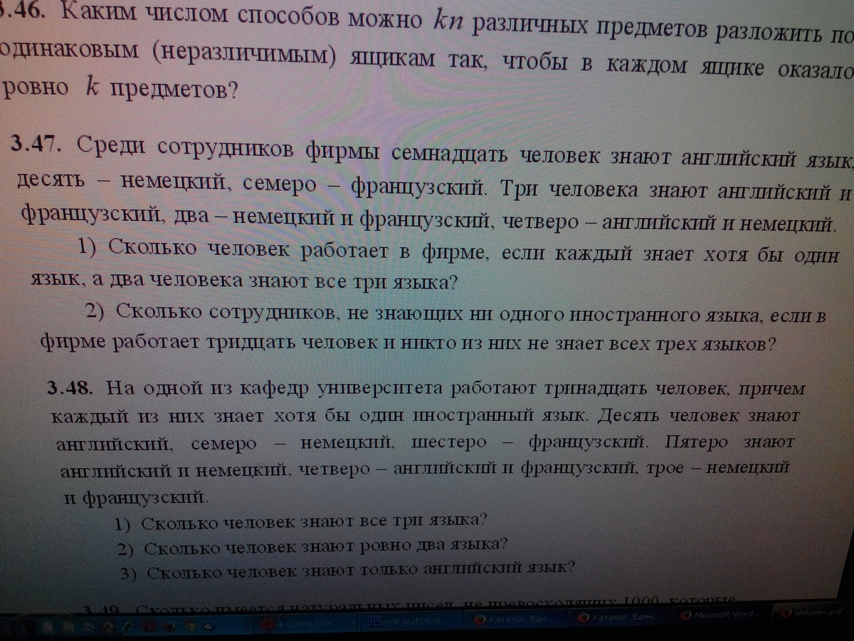 я невнимательно отнеслась к условию: вычислила тех кто знает только 1 язык, а не хотя бы 1 язык..но вопрос 2*2?