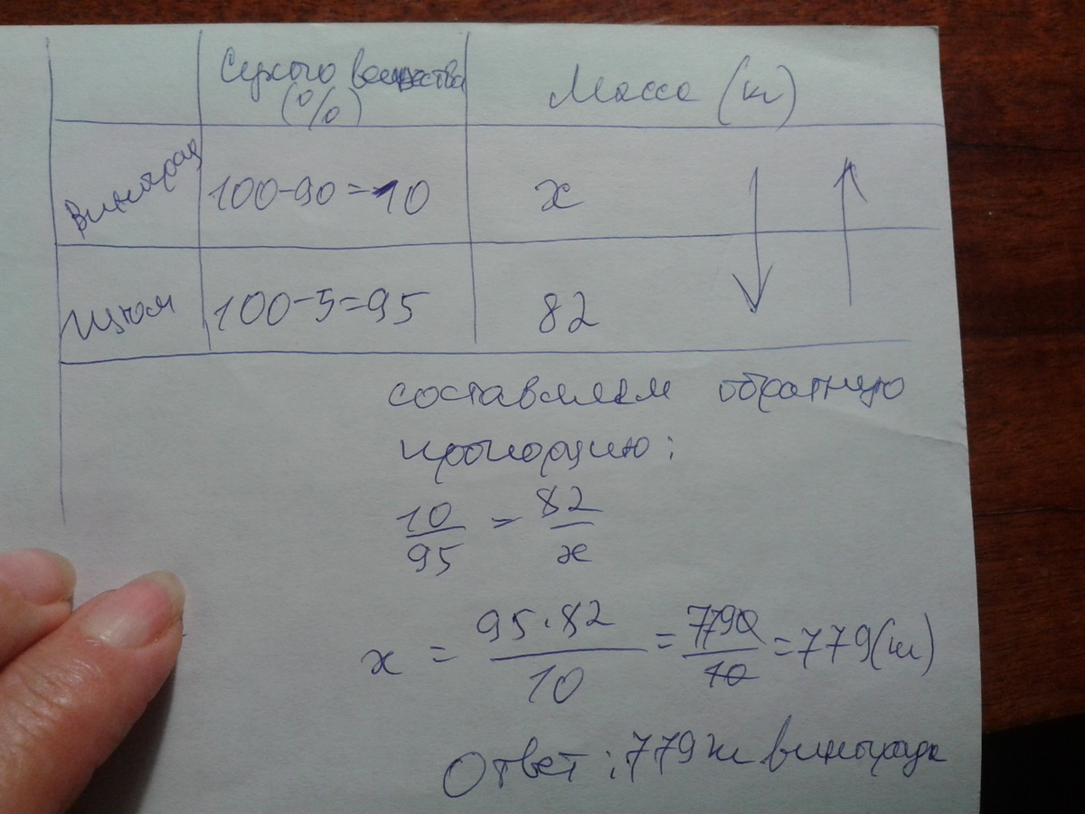 Виноград содержит 90% влаги, а изюм — 5%. Сколько килограммов винограда требуется для получения 82 килограммов изюма?