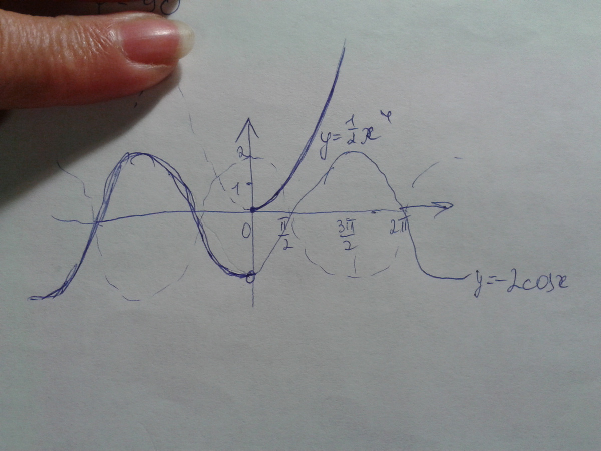 Сначала строим графики,атем выделяем жирными линиями те части графиков,которые указаны:у сosХ-х меньше 0, у параболы- х больше или равен 0.