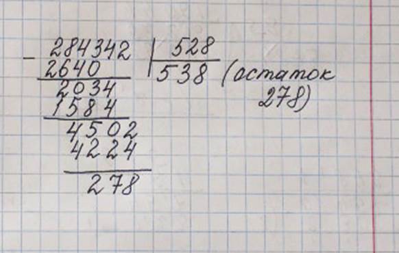 делишь как на однозначное или двузначное (принцип тот же), ответ может быть с остатком и без остатка))) посмотри, приблизительно так: