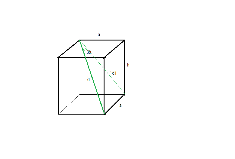 Диагональ параллелепипеда равна d и составляет с боковой гранью угол 30 градусов.