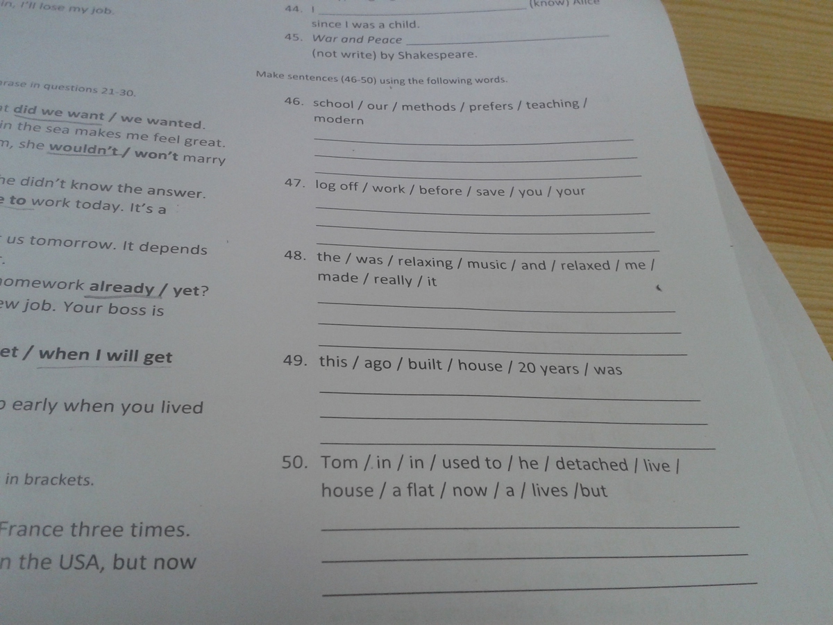 50. Tom used to live in a deatched house but now he lives in a flat.