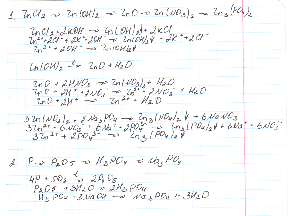 1)хлорид цинка---гидроксид цинка----оксид цинка-------нитрат цинка-----фосфат цинка.
