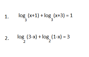 ![2. log_2(3-x)+log_2(1-x)=3; log_2[(3-x)(1-x)]=log_2(2^3); \ ODZ: begin {cases} 3-x>0 \ 1-x>0 end {cases}; begin {cases} x<3 \ x<1 end {cases} to x<1 \ (3-x)(1-x)=8; 3-3x-x+x^2=8; x^2-4x-5=0; \ D=16+4*5=36; sqrt{D}=6; \ x= frac{4mp 6}{2}; x_1=-1; x_2=5 2. log_2(3-x)+log_2(1-x)=3; log_2[(3-x)(1-x)]=log_2(2^3); \ ODZ: begin {cases} 3-x>0 \ 1-x>0 end {cases}; begin {cases} x<3 \ x<1 end {cases} to x<1 \ (3-x)(1-x)=8; 3-3x-x+x^2=8; x^2-4x-5=0; \ D=16+4*5=36; sqrt{D}=6; \ x= frac{4mp 6}{2}; x_1=-1; x_2=5](https://tex.z-dn.net/?f=2.++log_2%283-x%29%2Blog_2%281-x%29%3D3%3B++log_2%5B%283-x%29%281-x%29%5D%3Dlog_2%282%5E3%29%3B+%5C+ODZ%3A+begin+%7Bcases%7D+3-x%26gt%3B0+%5C+1-x%26gt%3B0+end+%7Bcases%7D%3B++begin+%7Bcases%7D+x%26lt%3B3+%5C+x%26lt%3B1+end+%7Bcases%7D+to+x%26lt%3B1+%5C+%283-x%29%281-x%29%3D8%3B++3-3x-x%2Bx%5E2%3D8%3B++x%5E2-4x-5%3D0%3B+%5C+D%3D16%2B4%2A5%3D36%3B+++sqrt%7BD%7D%3D6%3B+%5C+x%3D+frac%7B4mp+6%7D%7B2%7D%3B+x_1%3D-1%3B++x_2%3D5++)