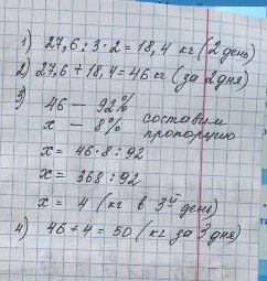 2) 27,6 + 18,4 = 46 (кг) - за два дня