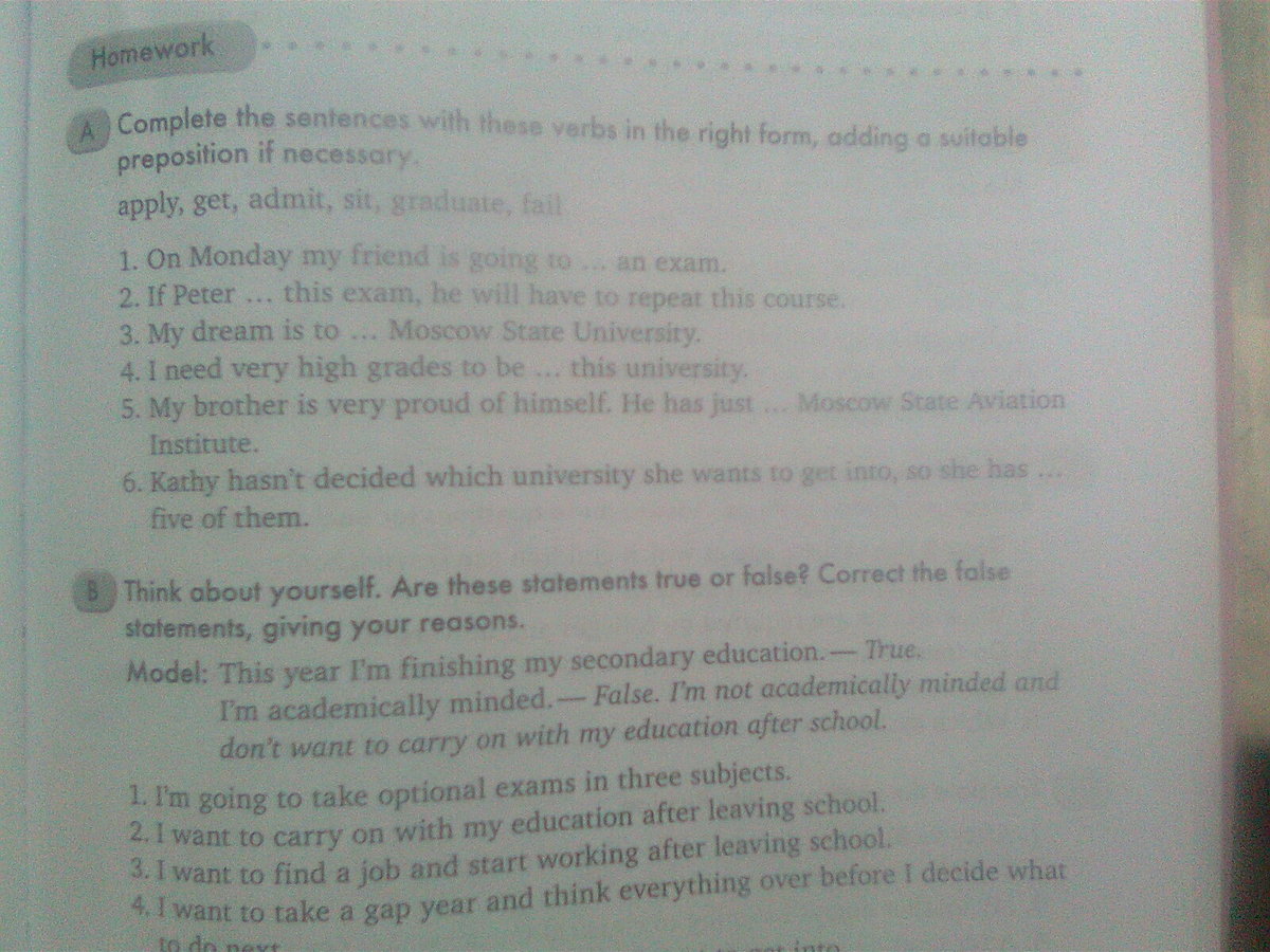 4. False. I don't want to take a gap year. I want to continue studies soon after leaving school.