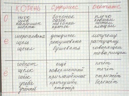 Заполните 2-3 словами таблицу "Буквы о,е,ё после шипящих в разных частях слова".Над какими видами орфогамм вы будете работать?Обозначьте условия выбора указанных букв.