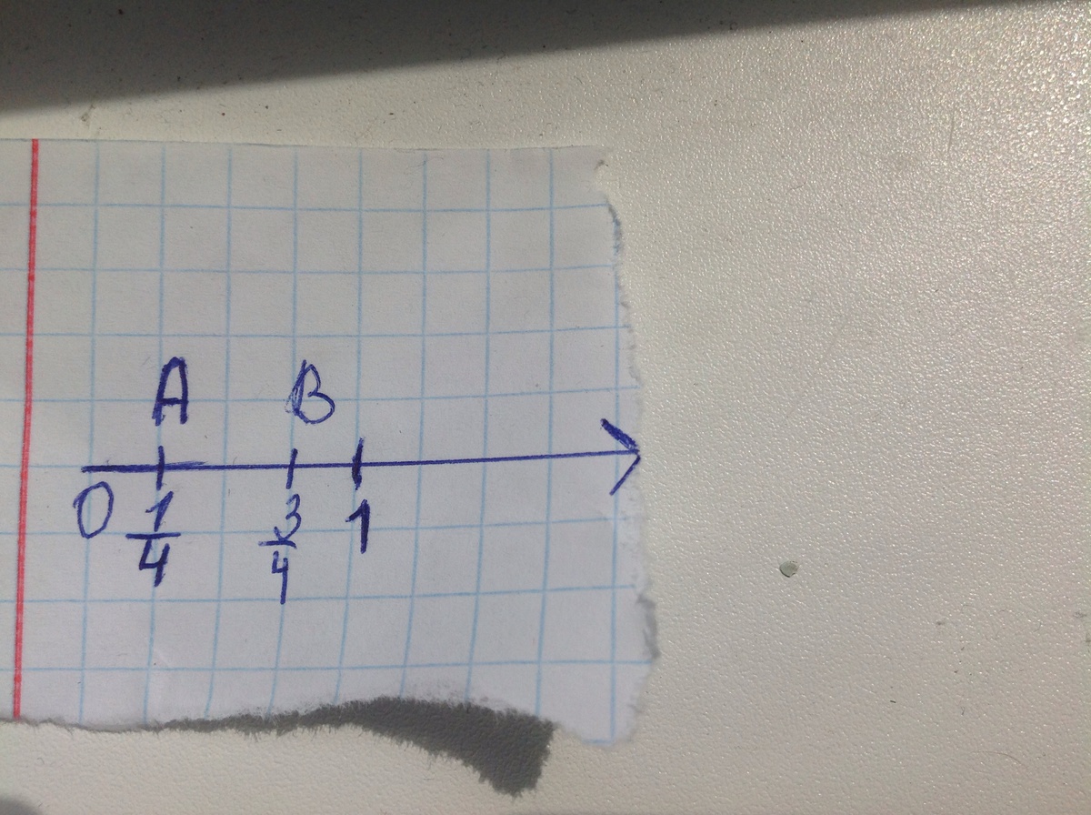Пожалуйста помагите Начертите координатный луч с единичным отрезком, равным 4 клеткам, и отметьте на нем точки A одна четвертая и B три четвертых. Чему равна длина отрезка AB?