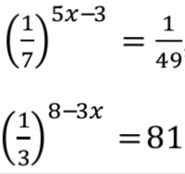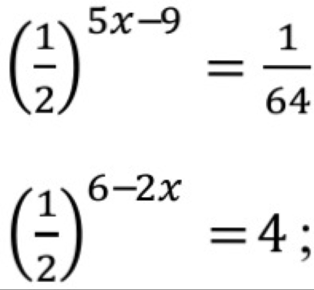 1) (1/2)^(5x-9) = 1*2⁹ / 2^(5x)