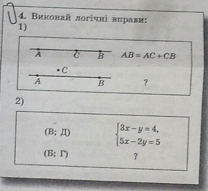 а может там нужно было придумать систему уравнений, имеющую решение (2; 4)??? просто во втором задании справа написана система уравнений, если ее решить, получится (3; 5) --- это как и написанные слева буквы алфавита В--3, Д--5... по аналогии Б--2, Г--4