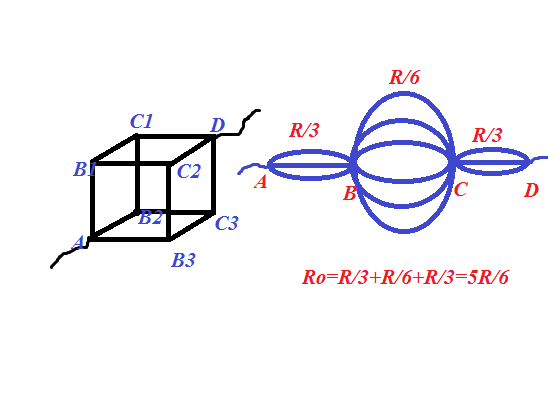 Каждая грань куба имеет сопротивление 1 оМ, Какое сопротивление будет по диоганали куба? Удачи)))))
