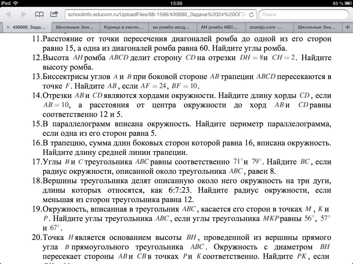сумма углов, прилежащих к боковой стороне трапеции, = 180 градусов ((т.к. основания трапеции параллельны))), следовательно сумма половинок этих углов = 90 градусов, т.е. получившийся треугольник АВF будет прямоугольным... (угол AFB = 90 градусов) ---> гипотенуза АВ = √(24²+100) = 26