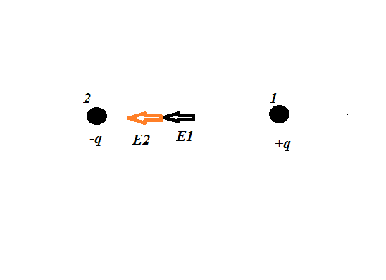 Заряды +10^-8 кл и -4^10-8кл находятся в вакууме на расстоянии 20 см друг от друга. Чему равна напряженность электрического поля посередине прямой, соединяющей эти заряды? К=9*10^9