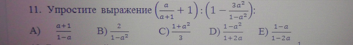 2)1-3а²1-а²=1*(1-а²)-3а²1-а²=1-а²-3а²1-а²=1-4а²1-а²