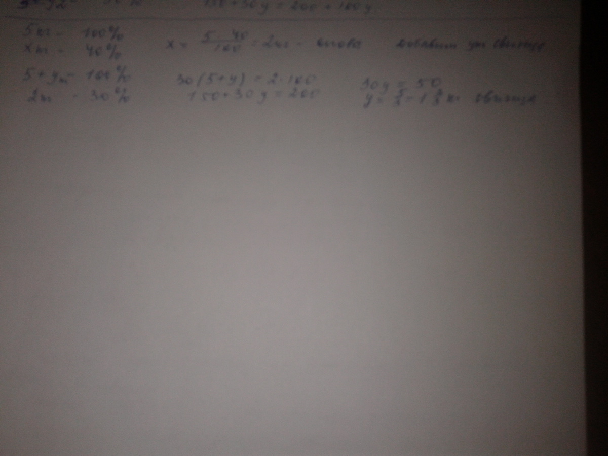 Имеем 5 кг сплава олова и свинца, вероятность олова в сплаве состовляет 40.Сколько свинца нужно добавить до этого сплава ,для того ччтобы вероятность олова в нем состоволяла 30?