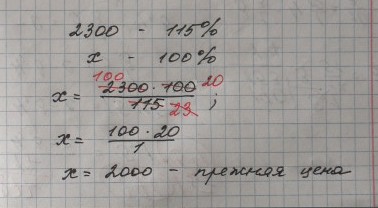 Пропорцию я составила, как начальная цена х руб. - 100%, а новая цена после повышения 2300 руб. - 115%...